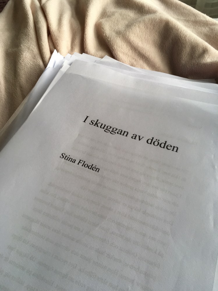 Har dessutom tagit upp manuset I skuggan av döden igen. Nu har det vilat i drygt fem veckor och den här gången läser jag högt. Först blev jag helt förtvivlad då jag hittade ett rätt rejält fel i texten. Herregud, skickade jag detta till Förläggaren??? Naturligtvis skyndade jag mig in i mailen och tog upp filen som skickades och nej, det var inte samma. Som tur var hade jag sett det innan och gjort en ny version. Puh! Så nu läser jag högt för mig själv och är faktiskt ganska (läs mycket) nöjd och stolt över mig själv!